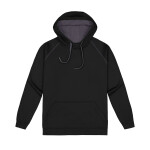 Pullover hood, raglan sleeves, kangaroo pocket, lined hood, tonal drawcord